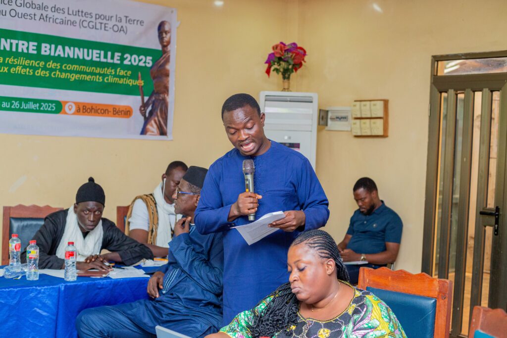 Du 23 au 26 juillet 2025, se tient à l’Hôtel La Canadienne de Bohicon la rencontre biannuelle 2025 de la Convergence Globale des Luttes pour la Terre, l’Eau et les Semences paysannes – Ouest Africaine (CGLTE-OA). Cette rencontre a mobilisé les délégués de tous les pays membres de la CGLTE-OA. Elle s’inscrit dans le cadre de la consolidation de la dynamique régionale, avec pour objectifs de faire le bilan des actions passées, de dégager des perspectives et de convenir des grandes orientations pour les trois années à venir.